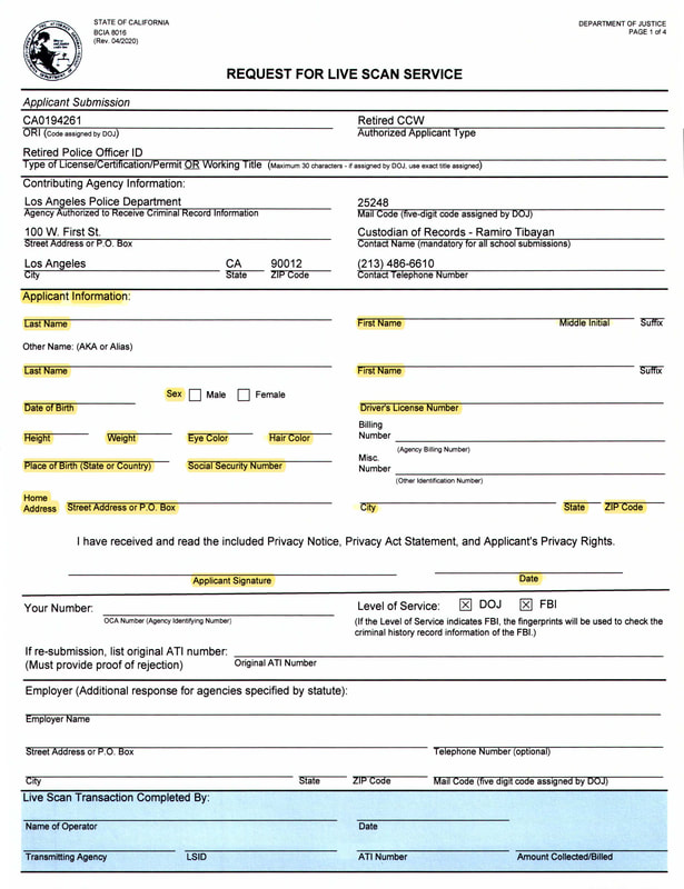 CA Resident – Live Scan Request Form