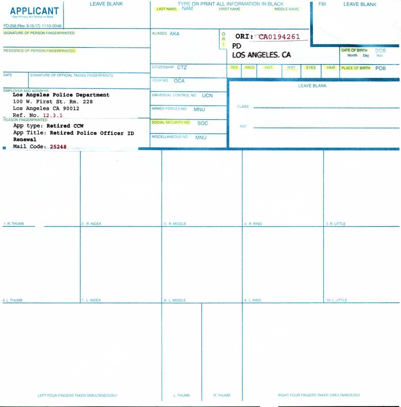 Non CA Resident – Fingerprinting Form