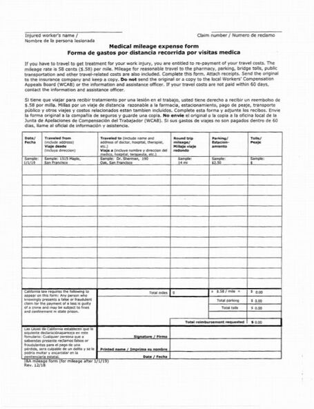 Medical Mileage Reimbursement Form